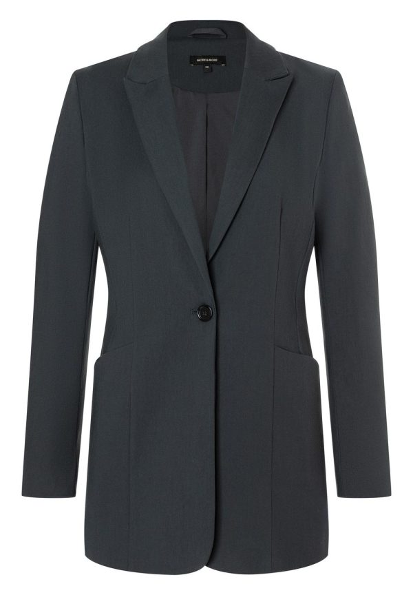 Der dunkelgraue Blazer von MORE & MORE wird mit passender Hose zum modernen Office-Look.