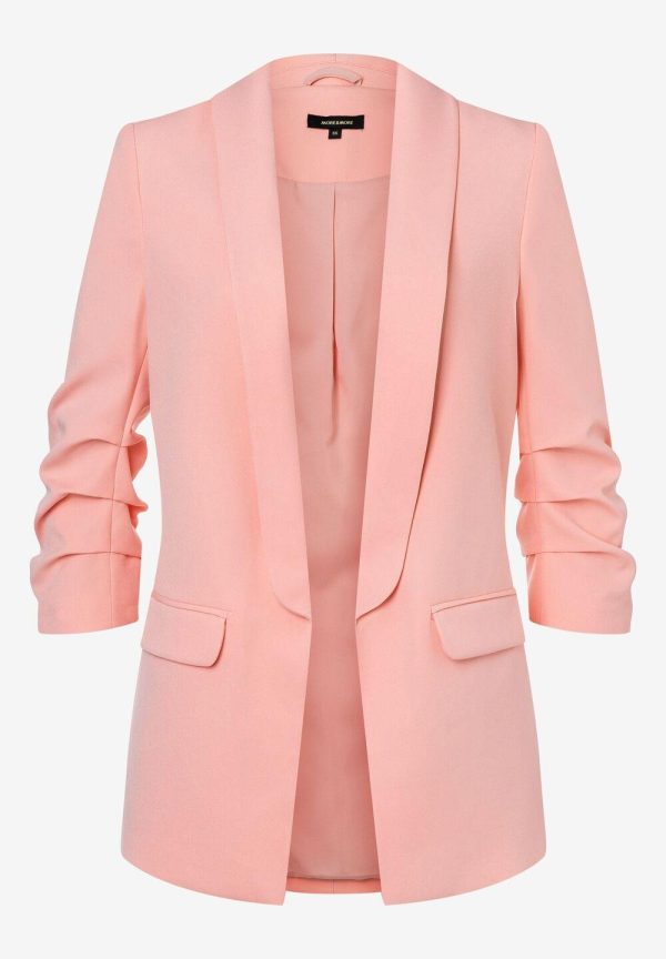 Der fließende Blazer von MORE & MORE mit 3/4 langen, gerafften Ärmeln und Schalkragen wirkt mit passender Hose wahnsinnig elegant und wird mit used Denim zum lässigen After-Work Look.