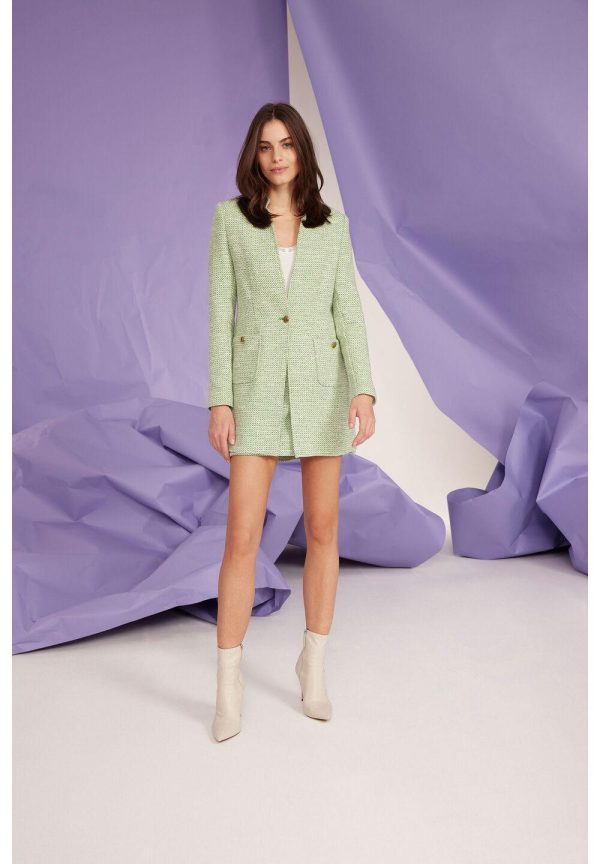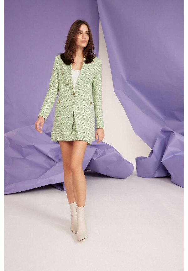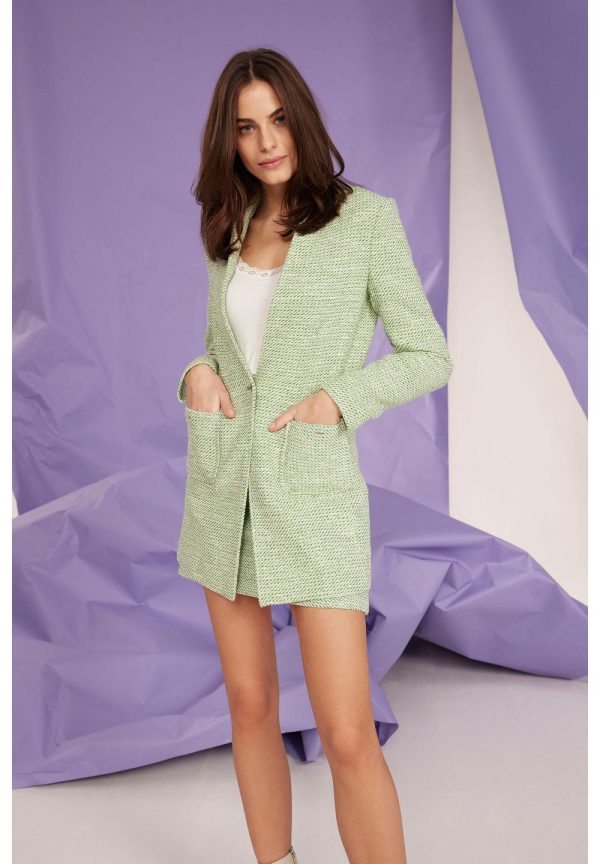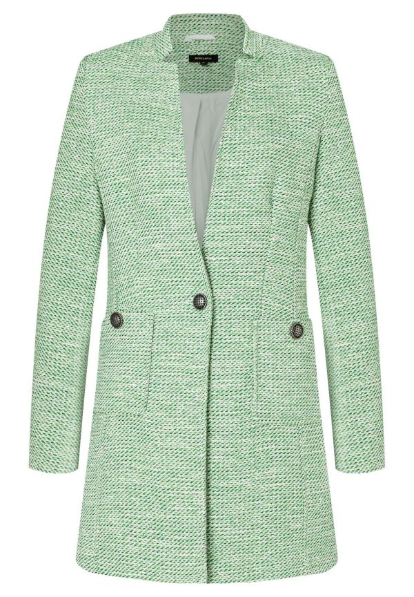 Der lange Summer-Bouclé-Blazer von MORE & MORE sieht sehr cool zur verwaschenen Jeans aus und wird mit passendem Rock zum femininen Lady-Look.