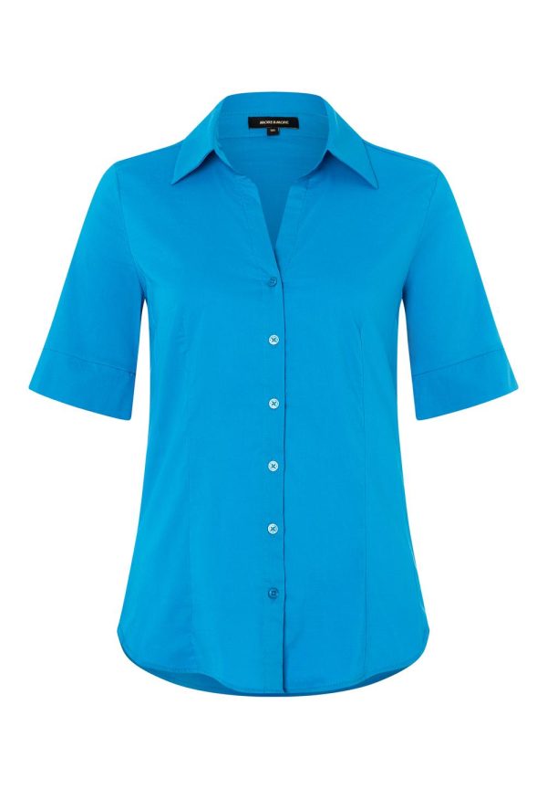 Perfekte Office-Bluse von MORE & MORE mit kurzen Ärmeln und offenem Hemdblusenkragen. Sie kann lässig zur Jeans gestylt werden oder klassisch zum Hosenanzug – ein absoluter Klassiker, der in keiner Garderobe fehlen sollte.