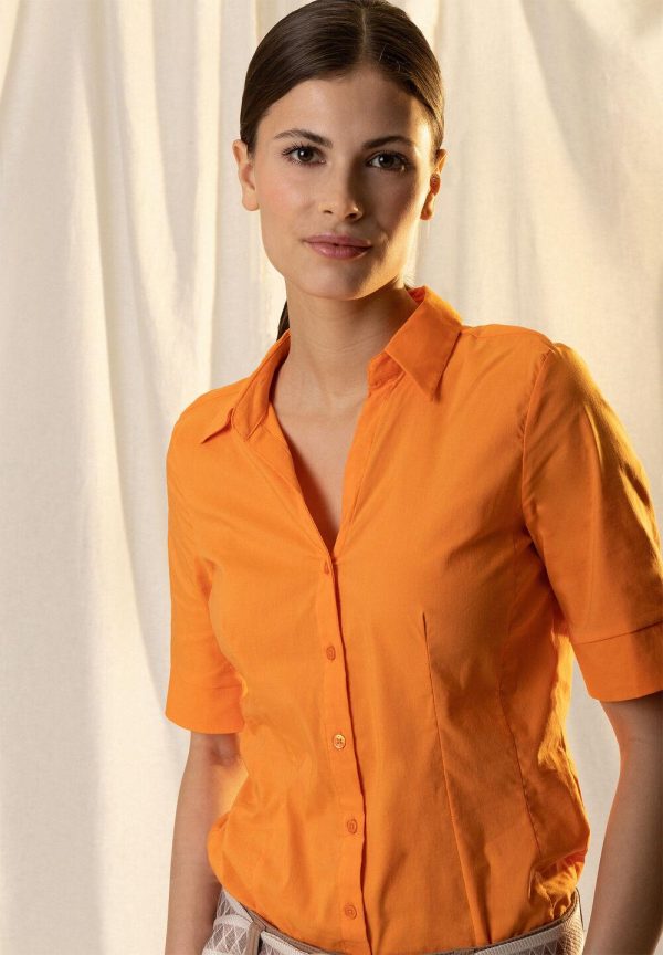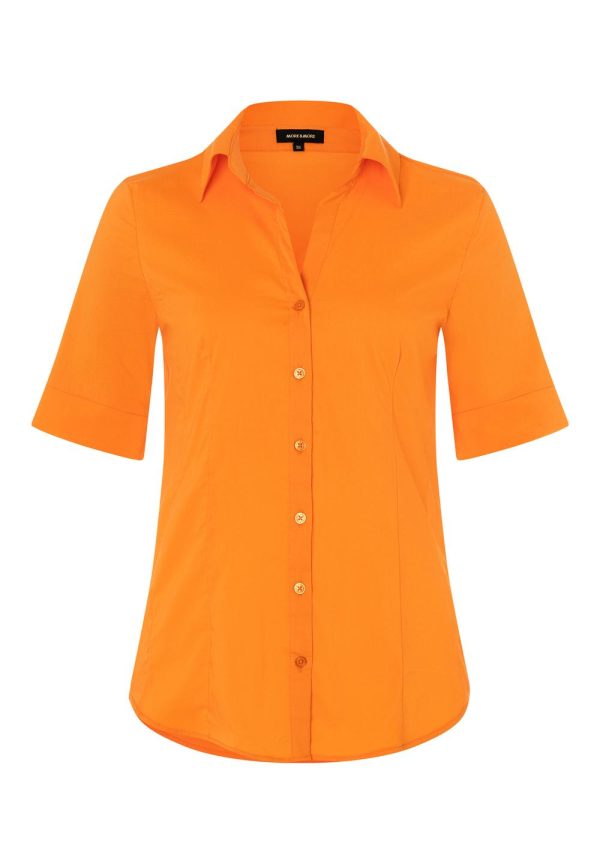 Perfekte Office-Bluse von MORE & MORE mit kurzen Ärmeln und offenem Hemdblusenkragen. Sie kann lässig zur Jeans gestylt werden oder klassisch zum Hosenanzug – ein absoluter Klassiker, der in keiner Garderobe fehlen sollte.
