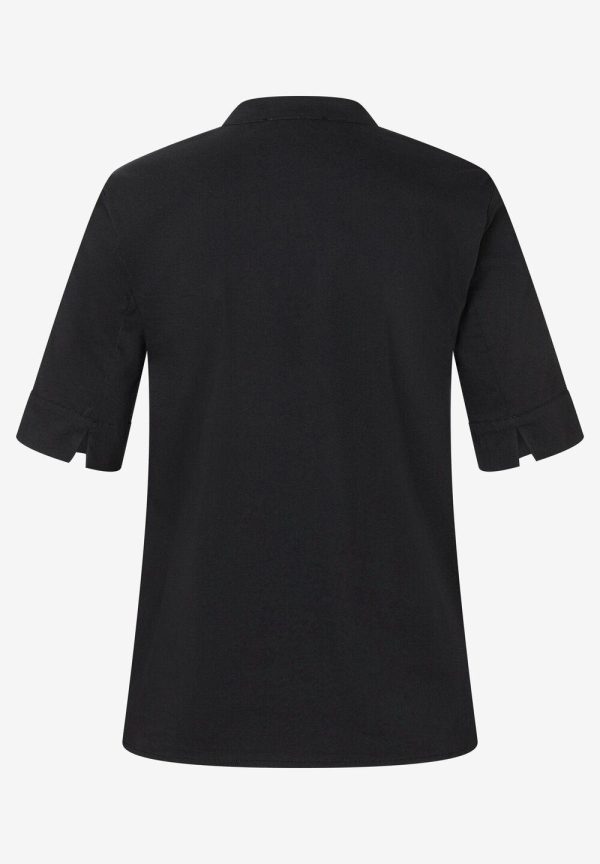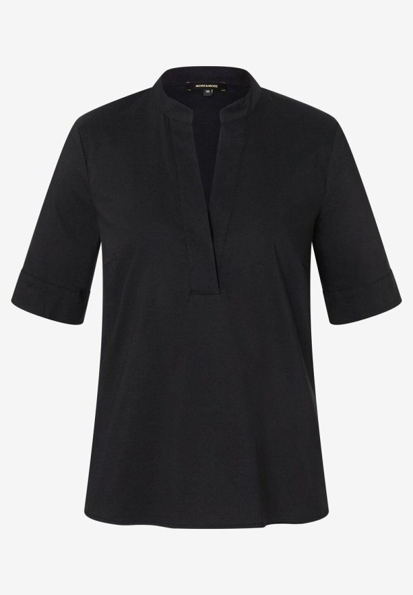Mit der schwarzen Baumwoll/Stretch Bluse von MORE & MORE liegen Sie genau richtig. Sie kann mit fast allem kombiniert werden, egal ob zur verwaschenen Jeans, zum fließenden Chiffonrock oder zur klassischen Businesshose.