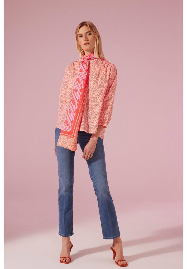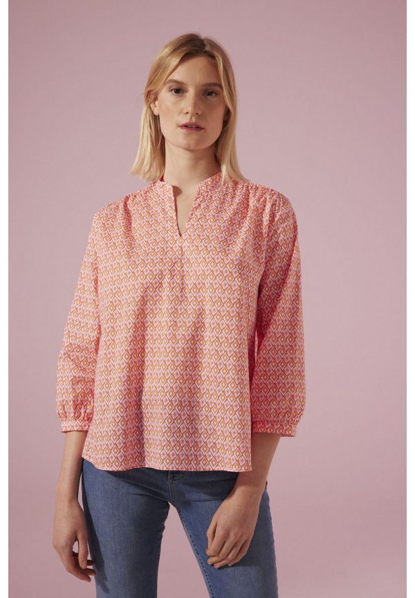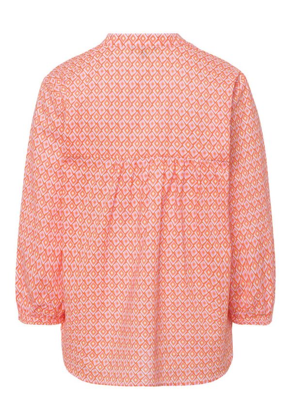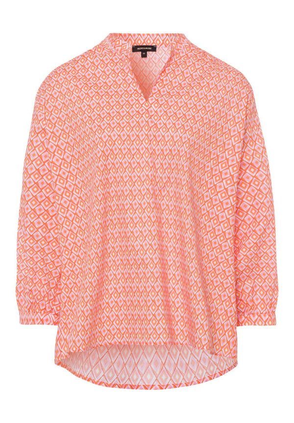 Attraktive Baumwollbluse von MORE & MORE mit grafischem Miniprint in orange/pink/weiß.