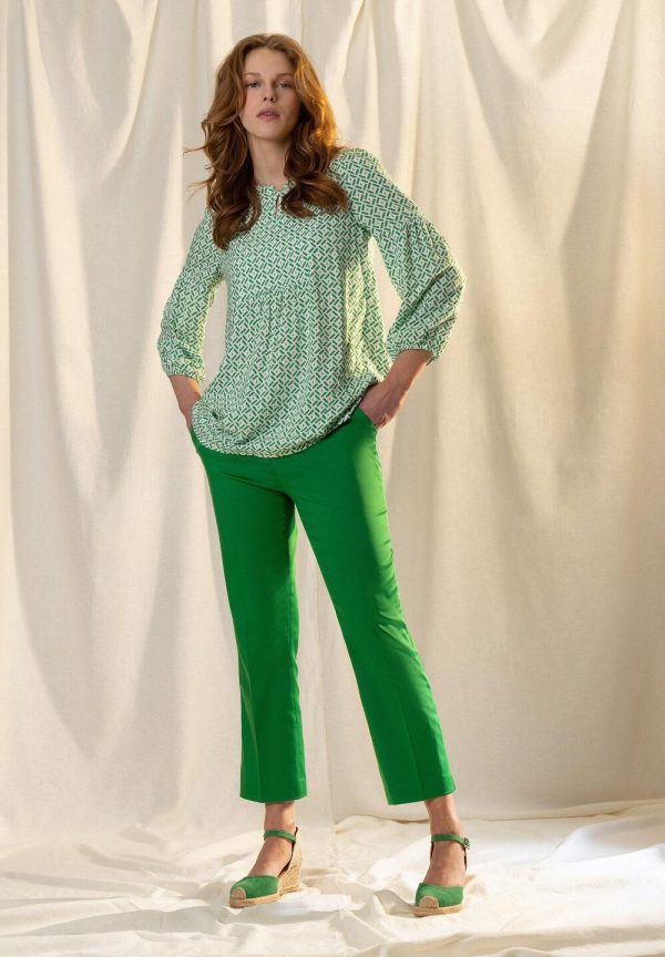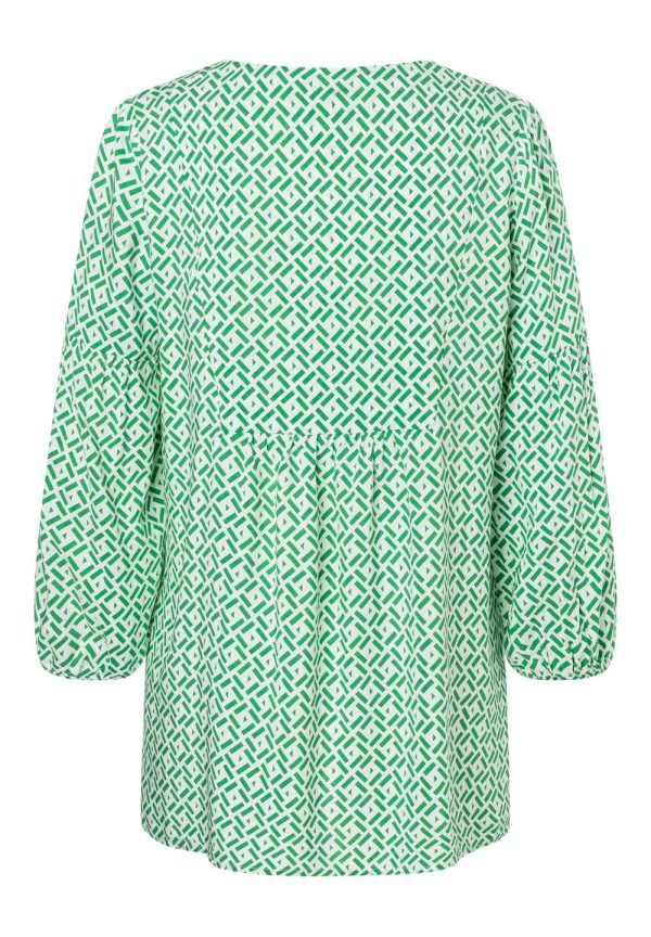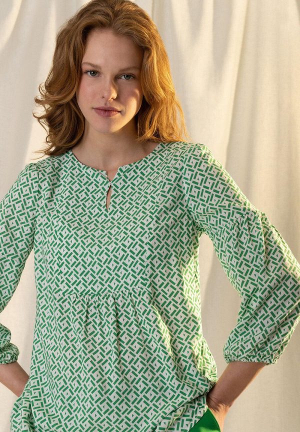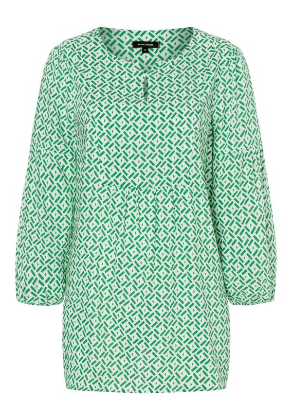 Angenehm fließende Viskosebluse von MORE & MORE in lockerer Tunikaform mit modernem grafischen Print in grün-offwhite.