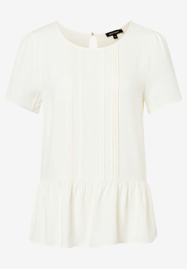 Die feminine Viskosebluse von MORE & MORE mit Biesen auf der Front und breitem Volant am Saum können Sie zur verwaschenen Jeans genauso gut tragen wie zur gepflegten Businesshose.