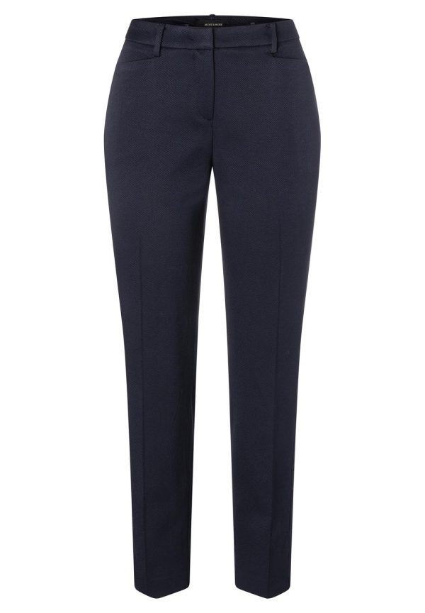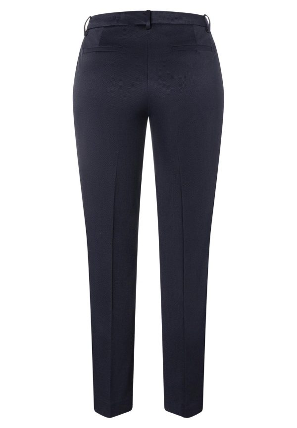 Tragen sie die stilvolle dunkelblaue Struktur-Hose von MORE & MORE mit passendem Blazer, Satinbluse und Heels und Sie sind im Büro mega-elegant gestylt.