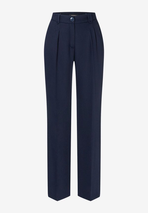 Die weite Bundfaltenhose von MORE & MORE kann ganz lässig mit Ringelshirt und Sneakers gestylt werden und wird mit passendem Longblazer zum modernen Business-Look.