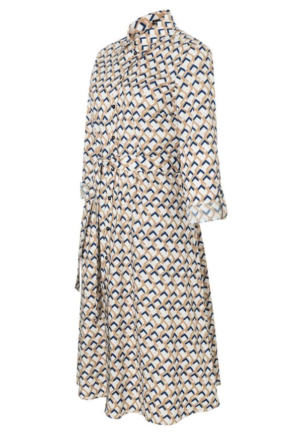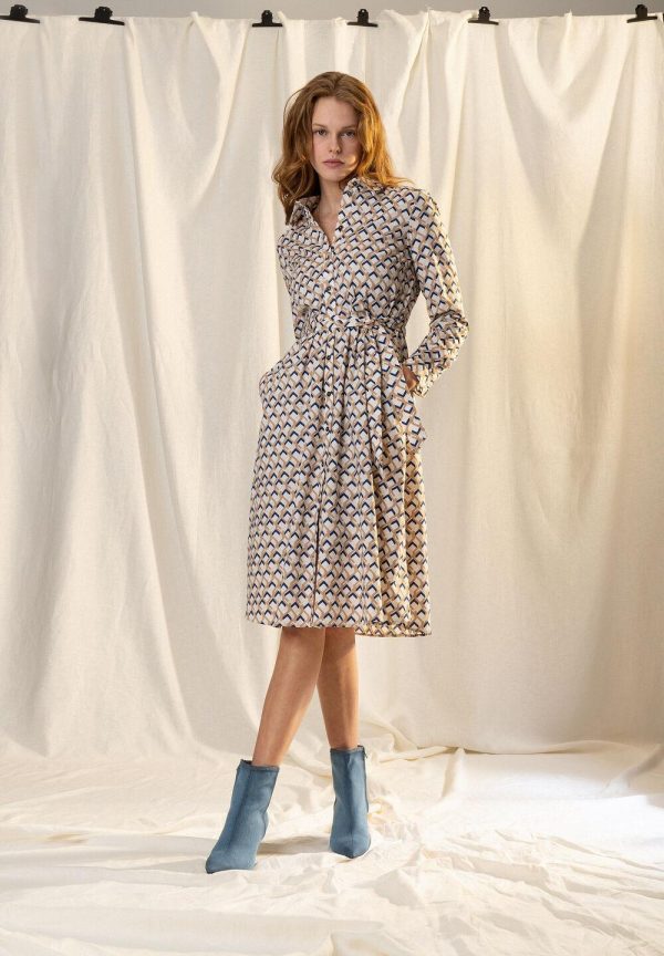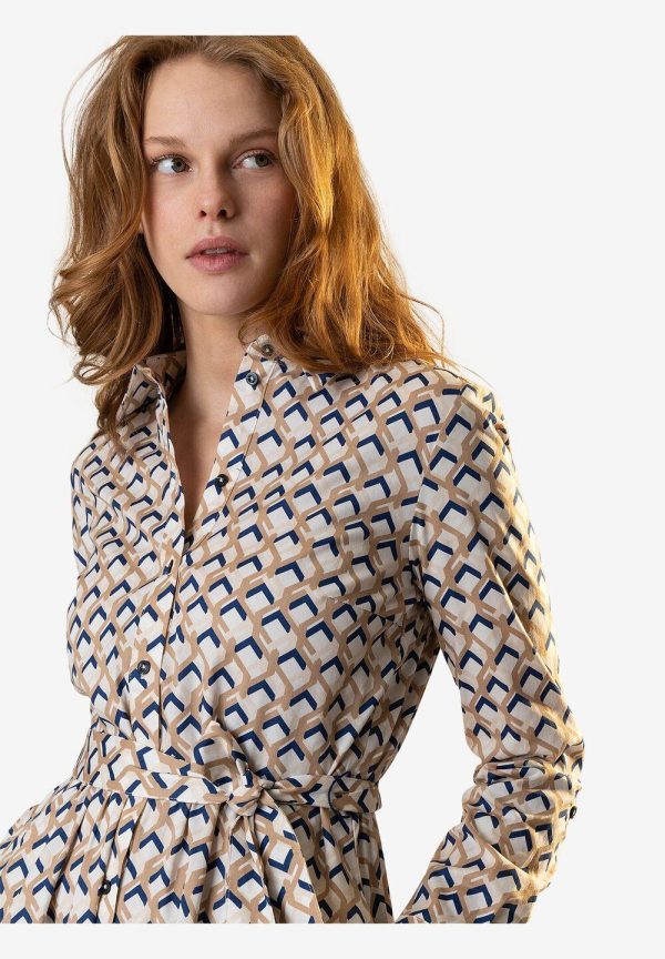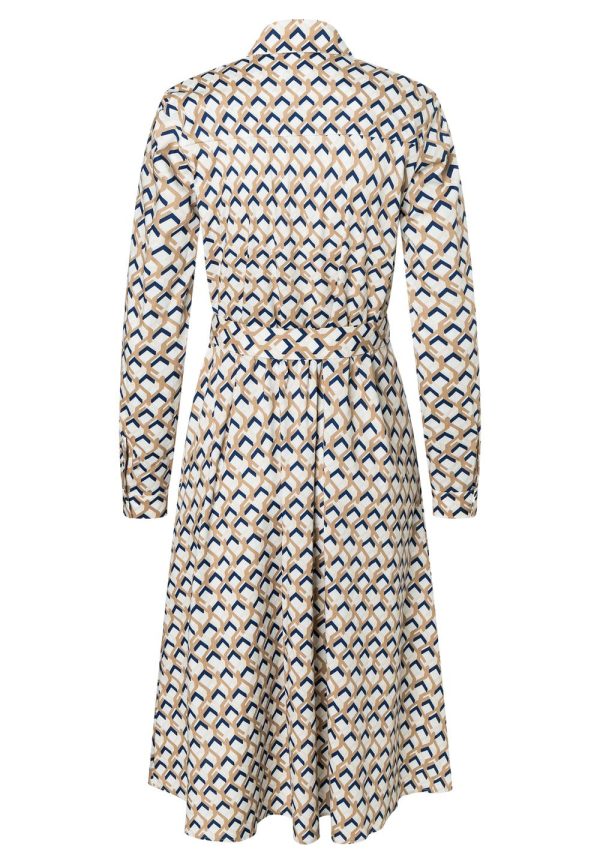 Attraktives Hemdblusenkleid von MORE & MORE mit graphischem Print und Bindegürtel in der Taille. Die langen Ärmel können hochgekrempelt und mit einem Riegel fixiert werden. Stylen Sie je nach Gelegenheit Heels, Sandalen oder Sneakers dazu, fertig ist ein moderner Look.
