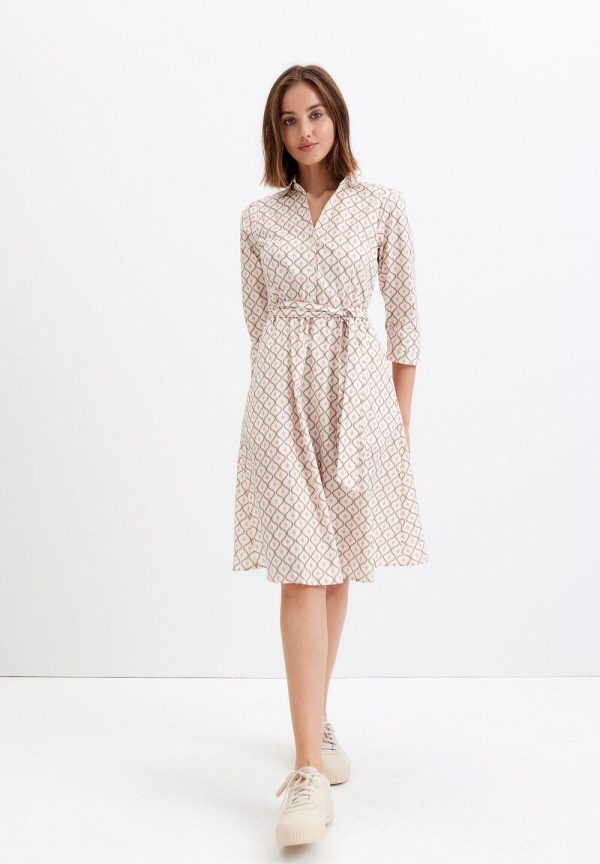 Attraktives Hemdblusenkleid von MORE & MORE mit grafischem Print und Bindegürtel in der Taille. Stylen Sie je nach Gelegenheit Heels, Sandalen oder Sneakers dazu, fertig ist ein moderner Look.