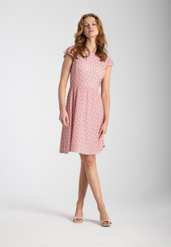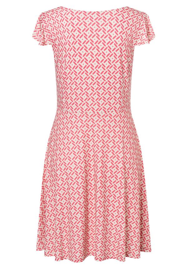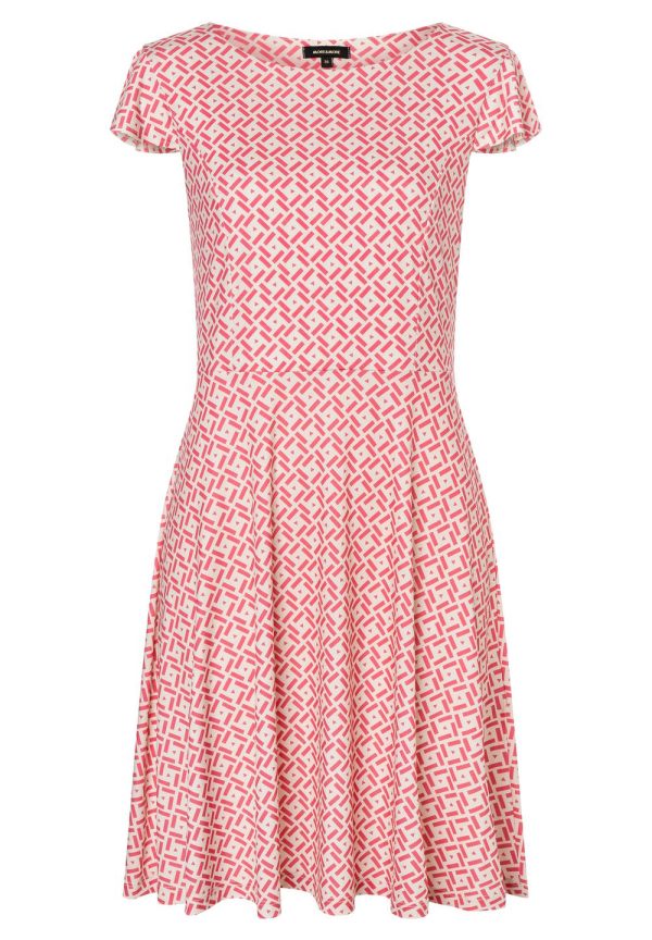 Schlicht, aber wirkungsvoll präsentiert sich das leichte Jerseykleid von MORE & MORE mit graphischem Print und femininer Silhouette. Es kann mit Cardigan, kurzem Blazer oder ganz pur gestylt werden und ist dazu auch noch wahnsinnig bequem und pflegeleicht. Ein perfektes Kleid für viele Gelegenheiten: City, Business, Dinner und Reisen.