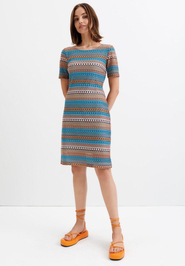 Das moderne MORE & MORE Kleid besticht durch seine schlichte Form und dem trendigen Zick-Zack-Dessin.