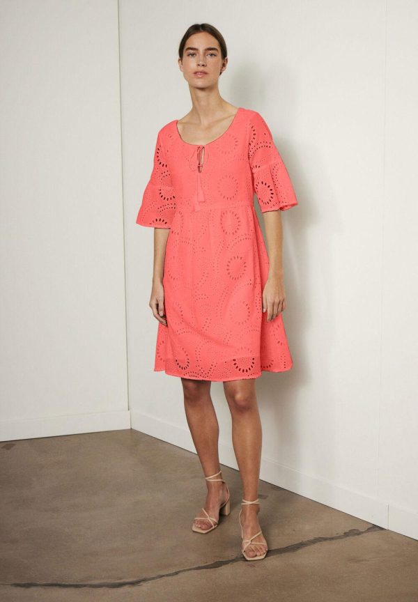 Mit dem femininen Tunikakleid von MORE & MORE aus sommerlicher Lochspitze sind Sie für viele Gelegenheiten perfekt gestylt. Tragen Sie je nach Anlass Sneakers, Sandalen oder Heels dazu.