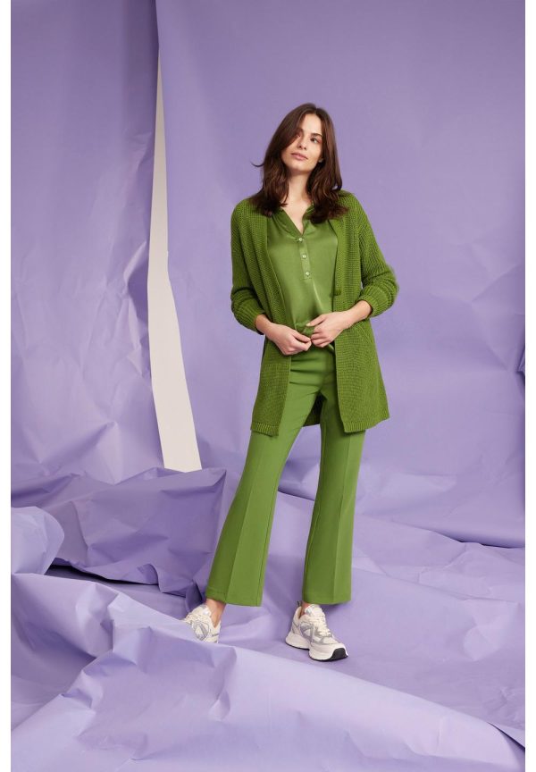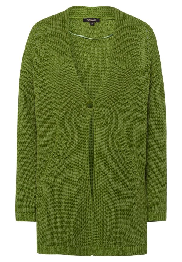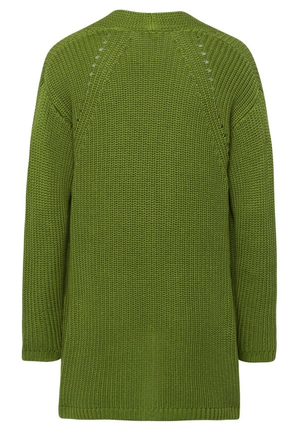 Der moderne Long-Cardigan von MORE & MORE in neuem GRÜN kann toll zu Kleidern, Hosen und Röcken gestylt werden.