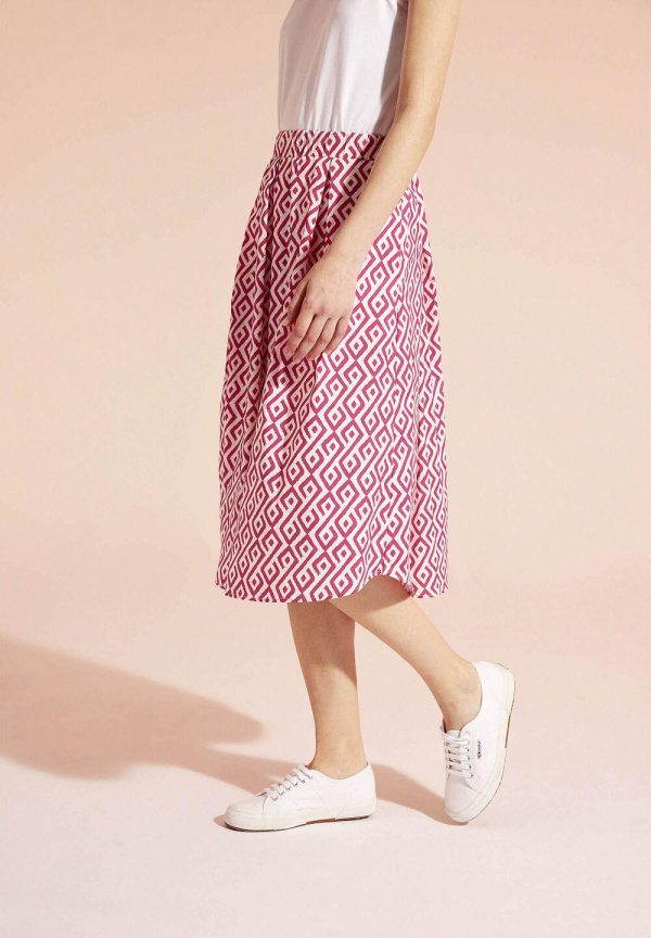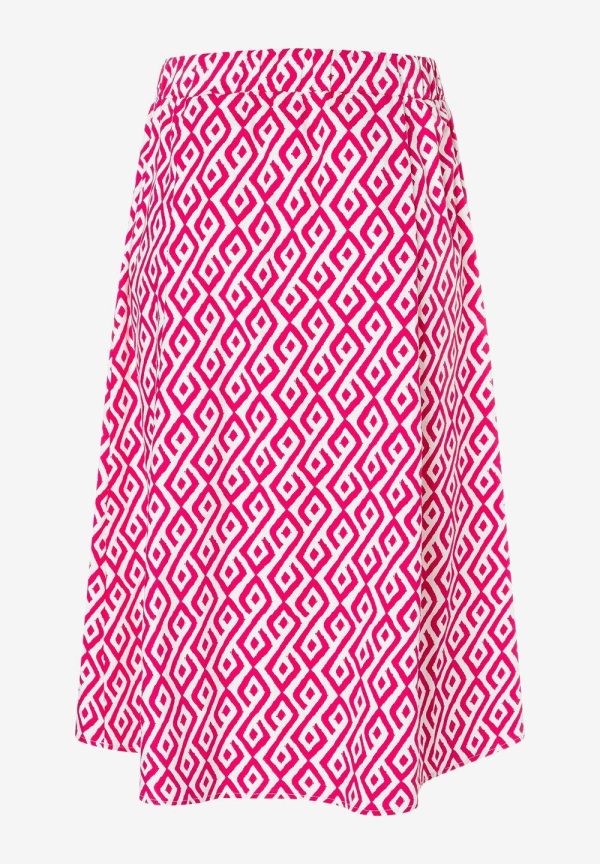 Der graphisch-gemusterte Rock von MORE & MORE in weiß/pink läßt sich easy kombinieren. Einfach ein weißes Shirt und Sneakers dazu, fertig ist ein cooler Sommer-Look.