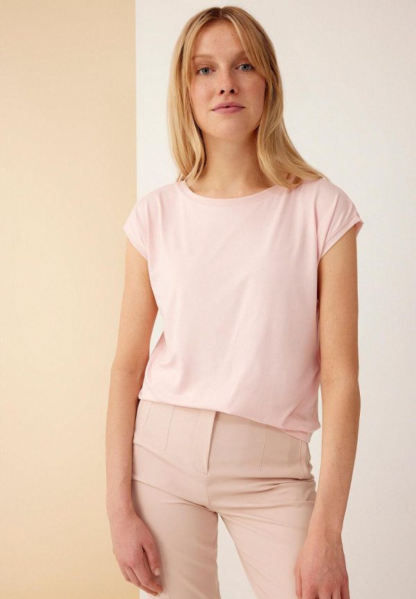Feminines T-Shirt von MORE & MORE mit rundem Ausschnitt und überschnittenen Schultern.