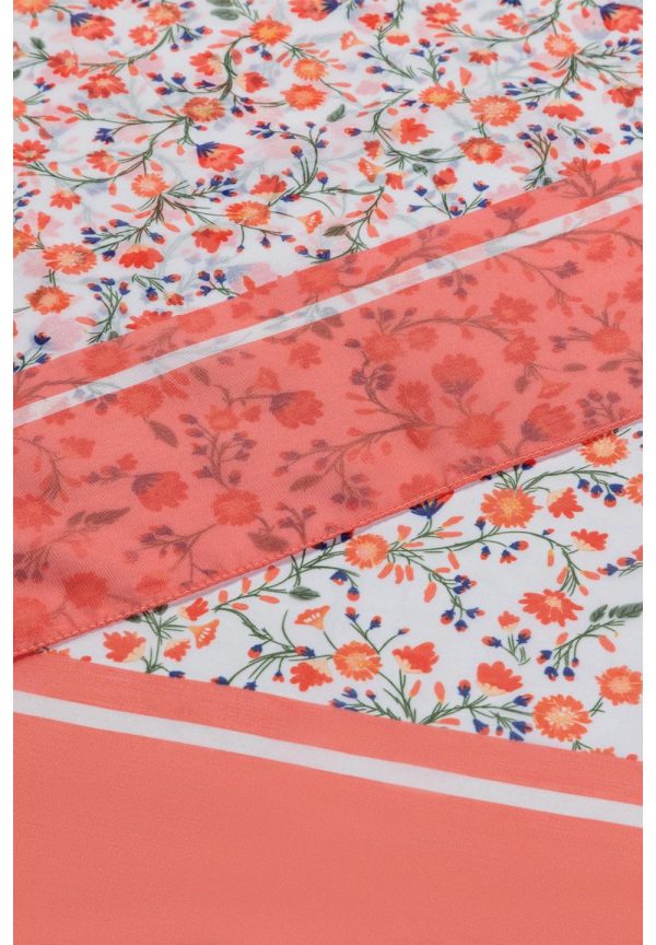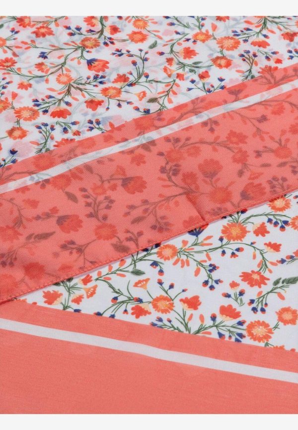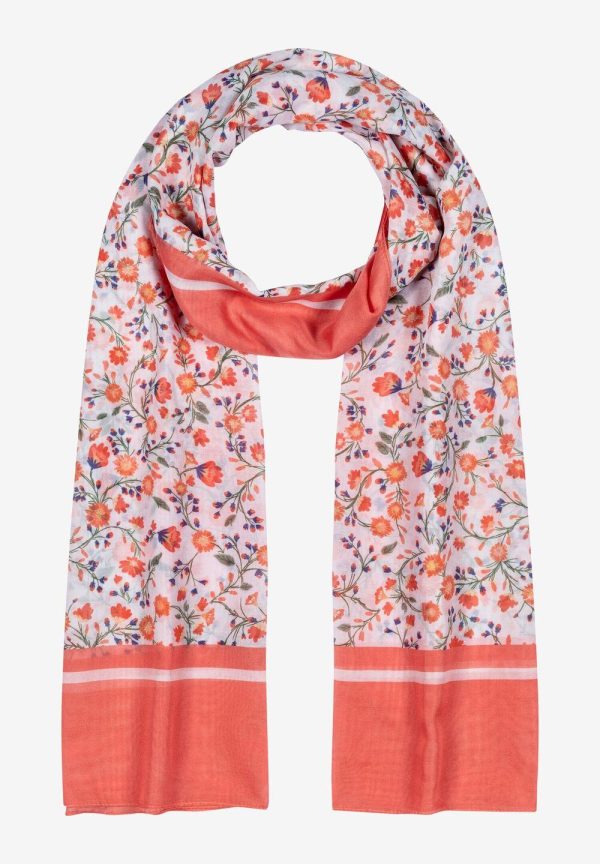 Fließender Printschal von MORE & MORE mit sommerlichem Millefleur-Dessin auf weißem Fond. 100% Polyester