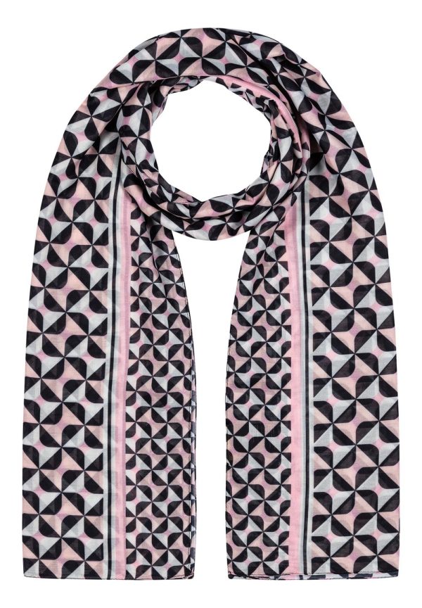 Fließender Printschal von MORE & MORE mit graphischem Minimuster in marine/rosa/weiß/beige. 100% Polyester